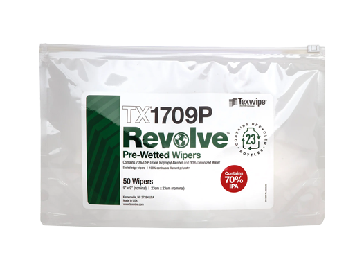 Texwipe® offers a range of sustainable wipes and mop covers for cleanrooms. These products are made using upcycled polyester yarn only. No other types of yarn are added into the fabric. This makes Revolve™ a 100% sustainable product line.